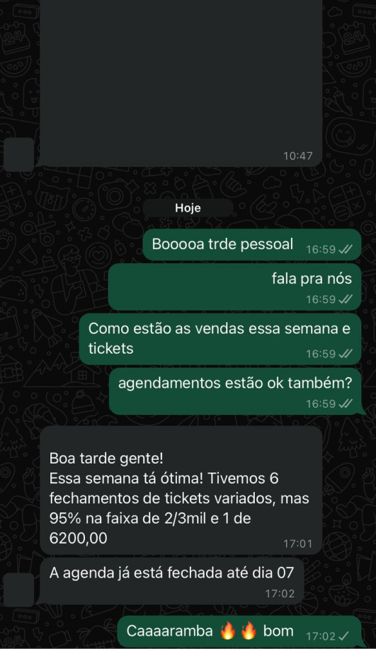 1 semana de anúncios ativos e comercial alinhado